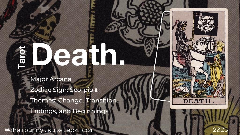 A tarot message on endings, identity shifts, and the power of letting something die with intention + journaling prompts to guide your next steps.